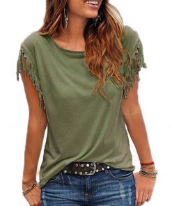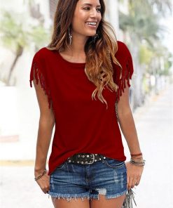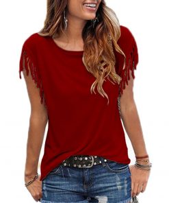 Women Tassel T-shirt Casual Solid Color Tees Short Sleeve O-neck Sweate Tops Women’s Clothing t shirt WDC1735